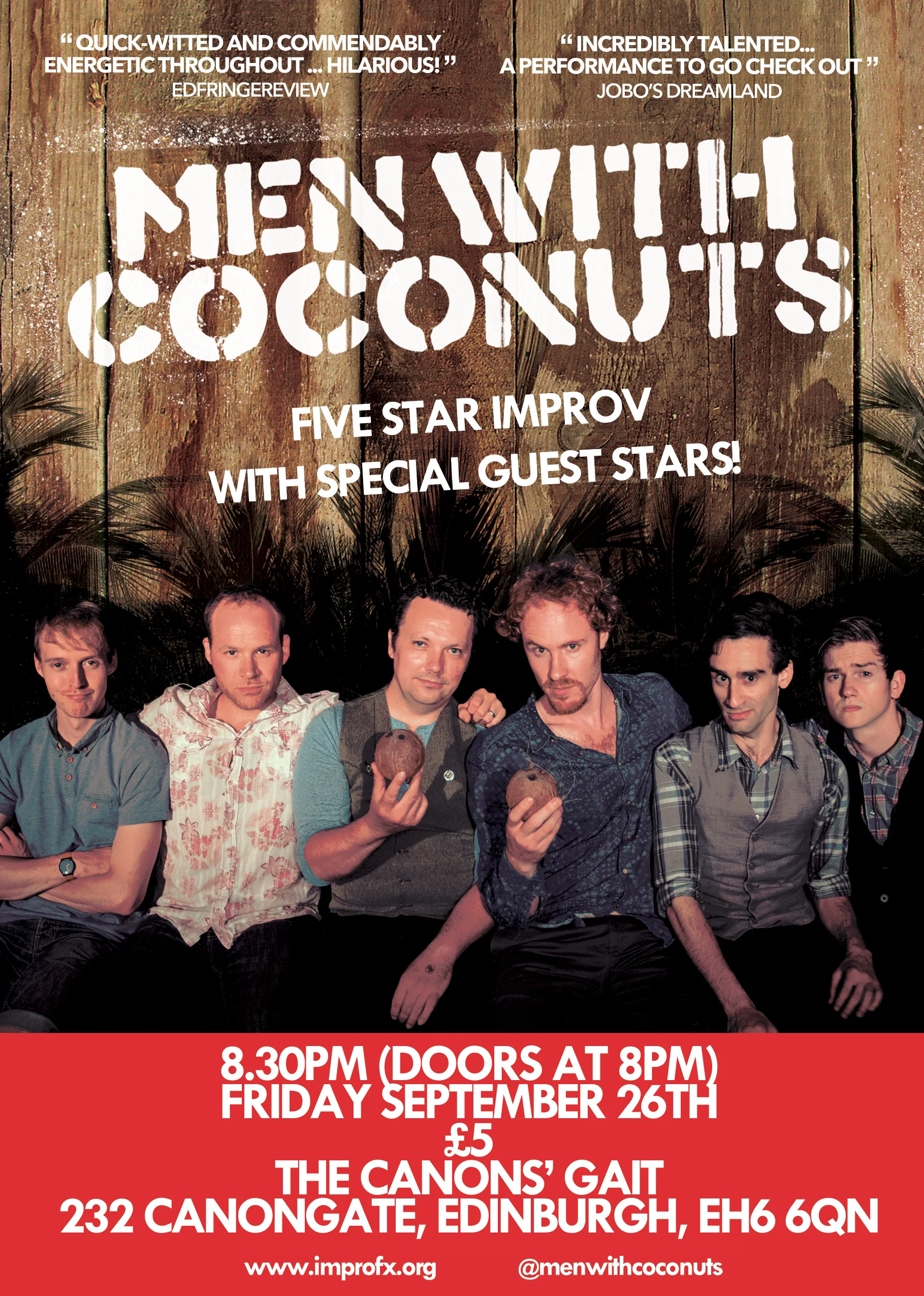 Men With Coconuts have been performing shortform, longform, musical and narrative improv comedy shows since their debut at the Edinburgh Fringe 2013. Click below for archives.